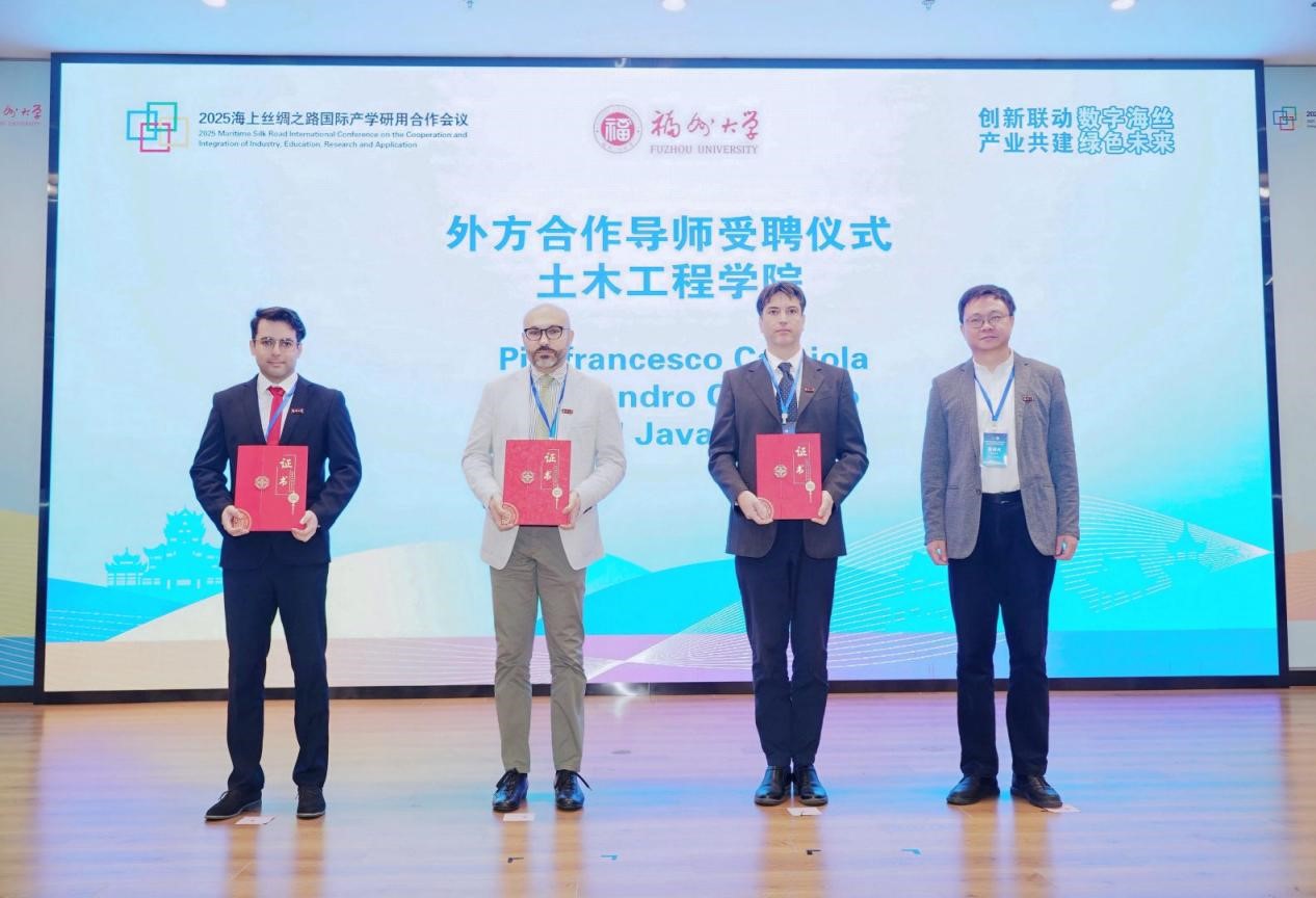 开幕式期间,学院吴唐风书记为联合培养外籍导师Pierfrancesco Cacciola教授、Alessandro Contento教授、Ahad Javanmardi副教授颁发聘书。根据合作规划,受聘专家将深度参与研究生联合培养工作,为福州大学完善国际化人才培养体系、提升学科国际竞争力提供支撑。