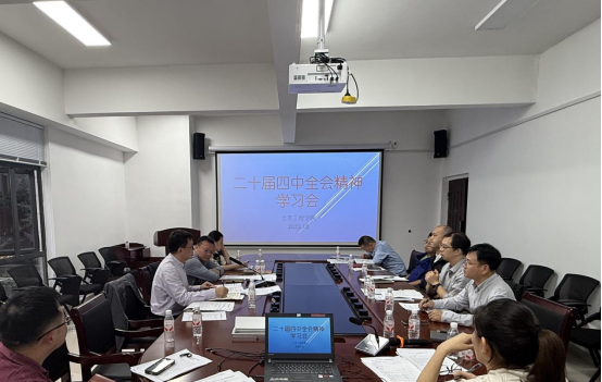 10月30日下午,土木工程学院召开党委会暨党委理论学习中心组学习会,传达学习习近平总书记在党的二十届四中全会上的重要讲话及全会精神,并研究贯彻落实工作。院党委书记吴唐风主持会议,学院党政班子成员、党委理论学习中心组成员及部分中层干部参加会议。